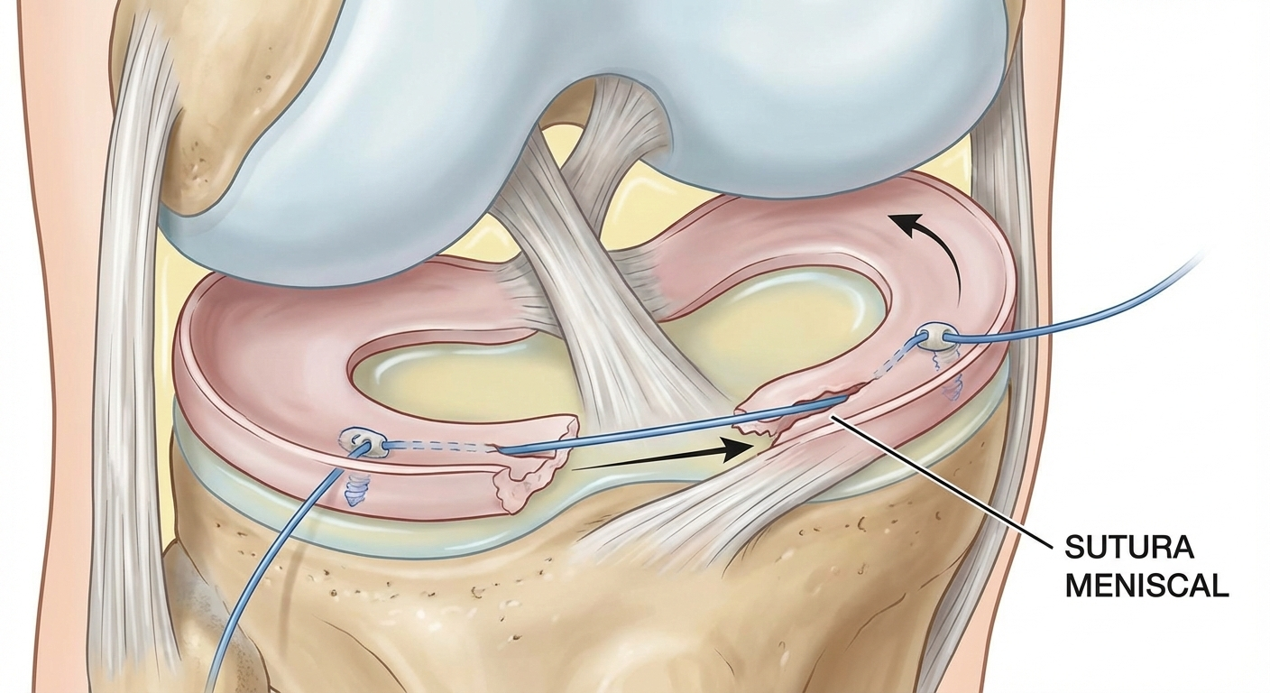 A diferencia de la meniscectomía (extracción parcial del menisco), la sutura preserva este importante amortiguador natural de tu rodilla, protegiendo el cartílago articular y previniendo la aparición temprana de artrosis.